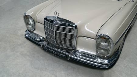 Neben dem Austausch der bereits erwähnten Reifen und Bremsen wurde das Fahrzeug mittels Eisstrahltechnik von Anhaftungen am Unterboden befreit, um sicherzustellen, dass tatsächlich keine Durchrostungen etc. vorhanden sind. Selbst die Wagenheberaufnahmen und Radhausschalen sind nicht ausgetauscht worden. Die Scheiben, Scheibengummis und Scheibenrahmen sind ebenfalls Originale und die Spaltmaße von Hauben und Türen weisen noch die Werkeinstellungen der Mercedes-Benz-Endkontrolle auf. Die Türfangbänder stehen noch so unter Spannung, dass die Tür beim loslassen (ähnlich einer Softclose-Automatik) ins Schloss fällt. Alles in allem ist dieses Fahrzeug sehr beeindruckend und wenn man bedenkt wie oft schon Fahrzeuge restauriert wurden, um wenigstens annähernd einen solchen Zustand zu erreichen und dafür auch noch deutlich mehr Geld in die Hand genommen werden musste, dann setzt dieses Exemplar die Messlatte zu vergleichbaren Fahrzeugen äußerst hoch an. Dieser 280S hier besitzt noch die so gerne erwähnte Seele.