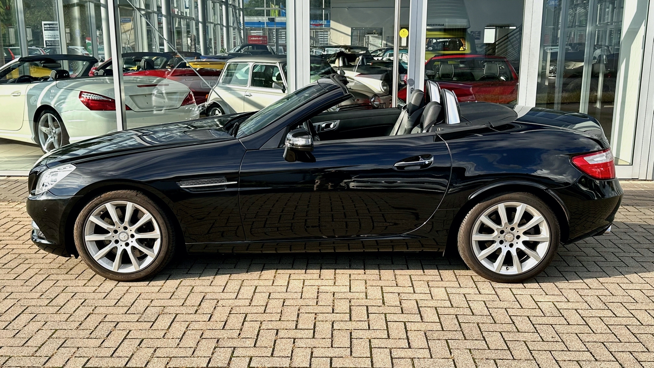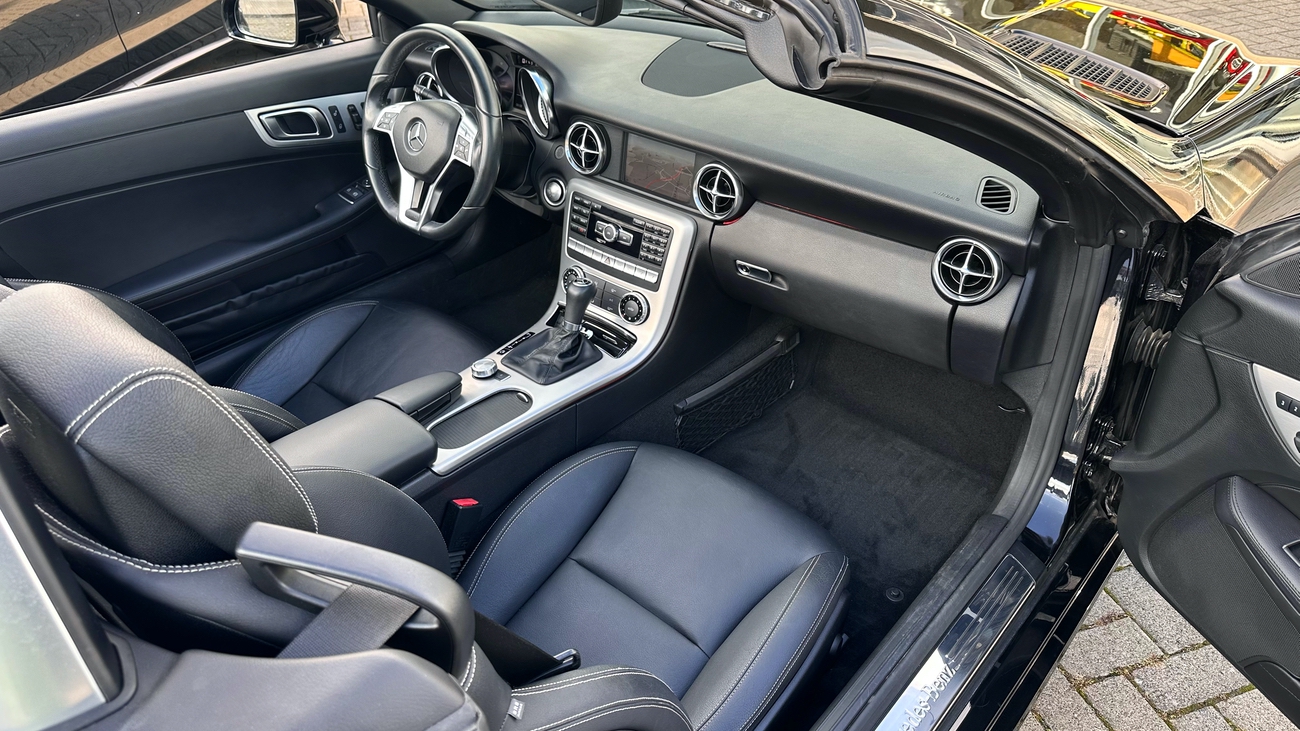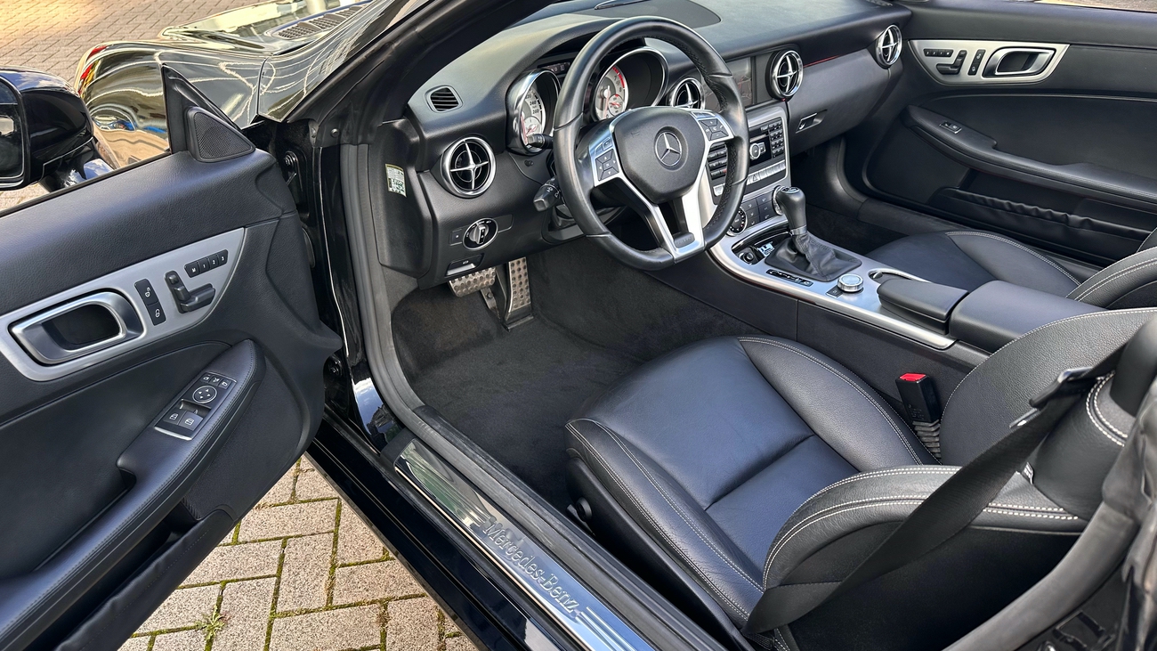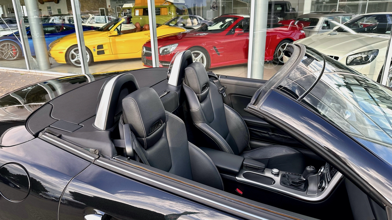 Dieser SLK 350 ist neu in unserem Angebot und befindet sich in einem hervorragenden Zustand. Das Navigations-Kartenmaterial wurde auf das aktuelle Mercedes-Benz Kartenmaterial (2022/2023) aktualisiert. Der SLK 350 hat den gleichen Motor (Sauger) wie der größere SL 350 verbaut und in diesem leichteren SLK, entfaltet dieser deutlich mehr Kraft und klingt dabei noch fantastisch. Die Lenkung ist wie bei einem Sportwagen sehr direkt und die Fahrdynamik des SLK sorgt für echten Fahrspaß.