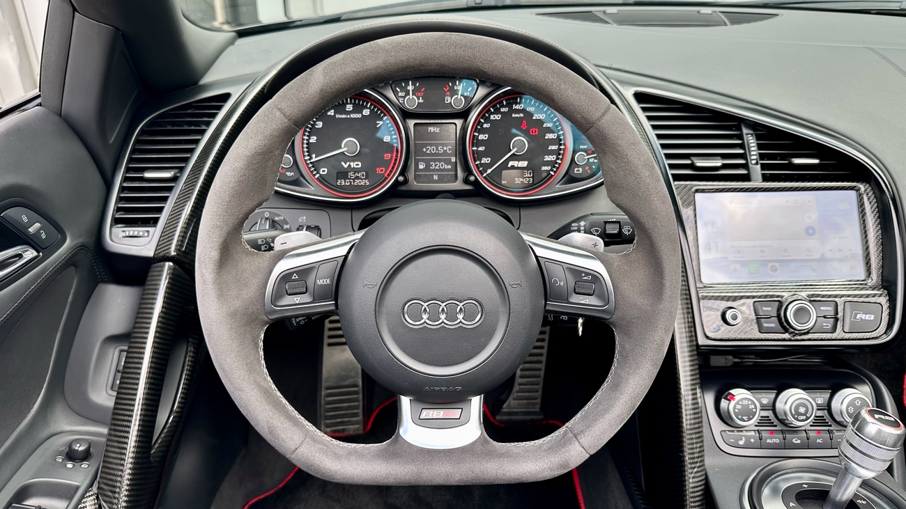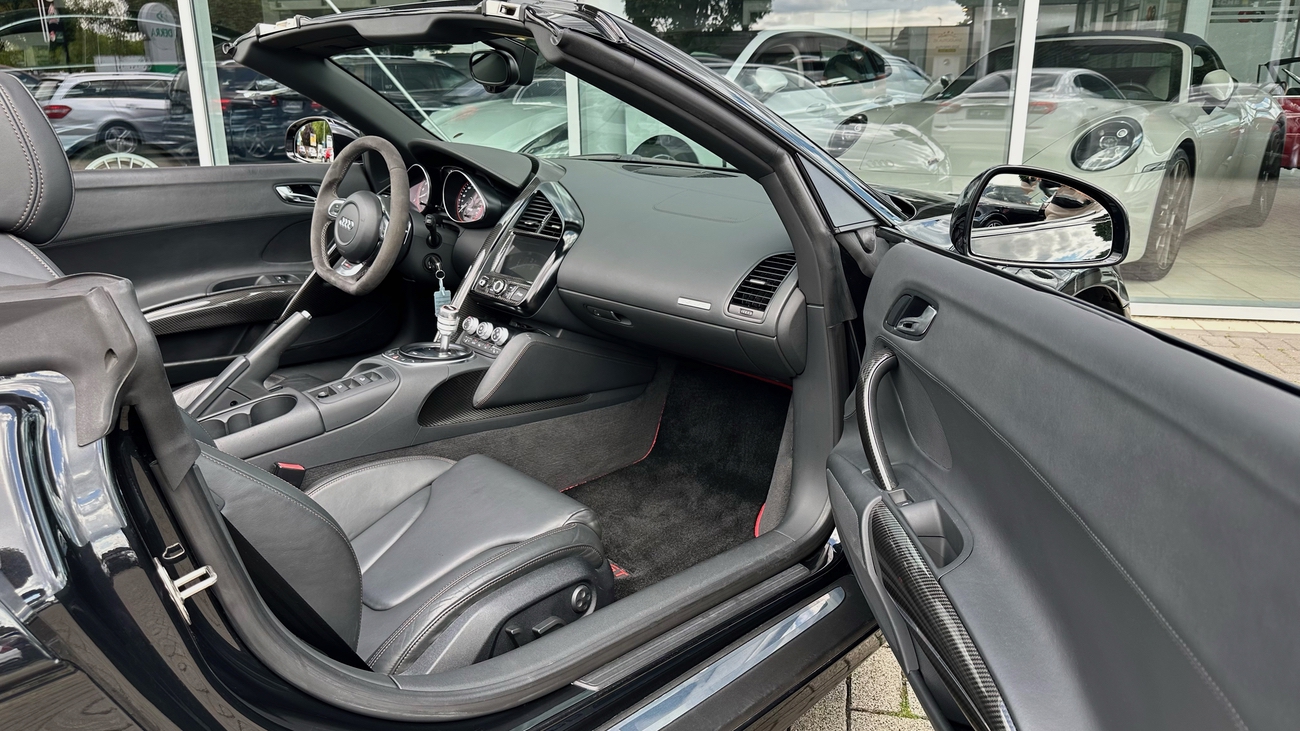Der Audi R8 V10 Spyder ist mehr als nur ein Auto. Er ist ein echtes Erlebnis. Denn mit jedem Gasstoß erwacht der V10 wahrhaftig zum Leben und der Klang des V10-Motors ist eine Symphonie für Motorsport-Enthusiasten.
