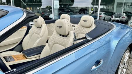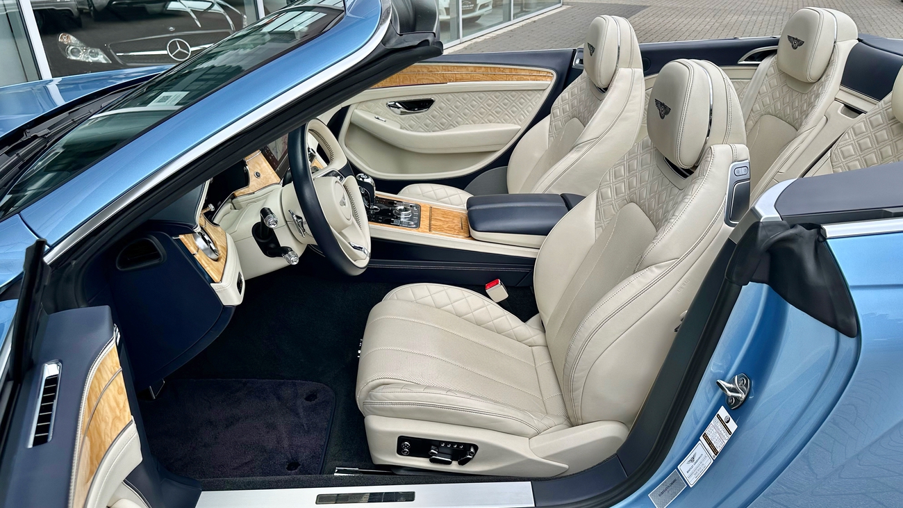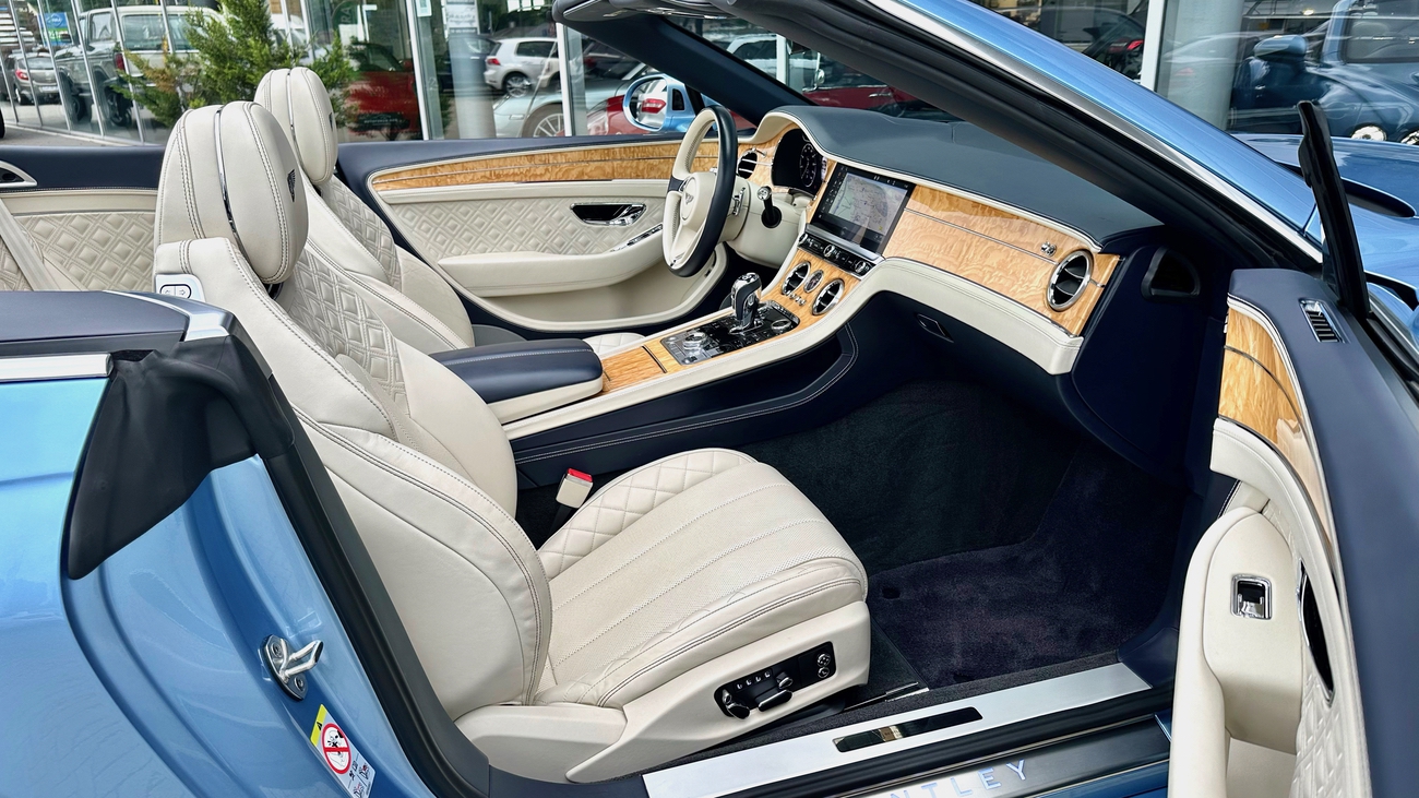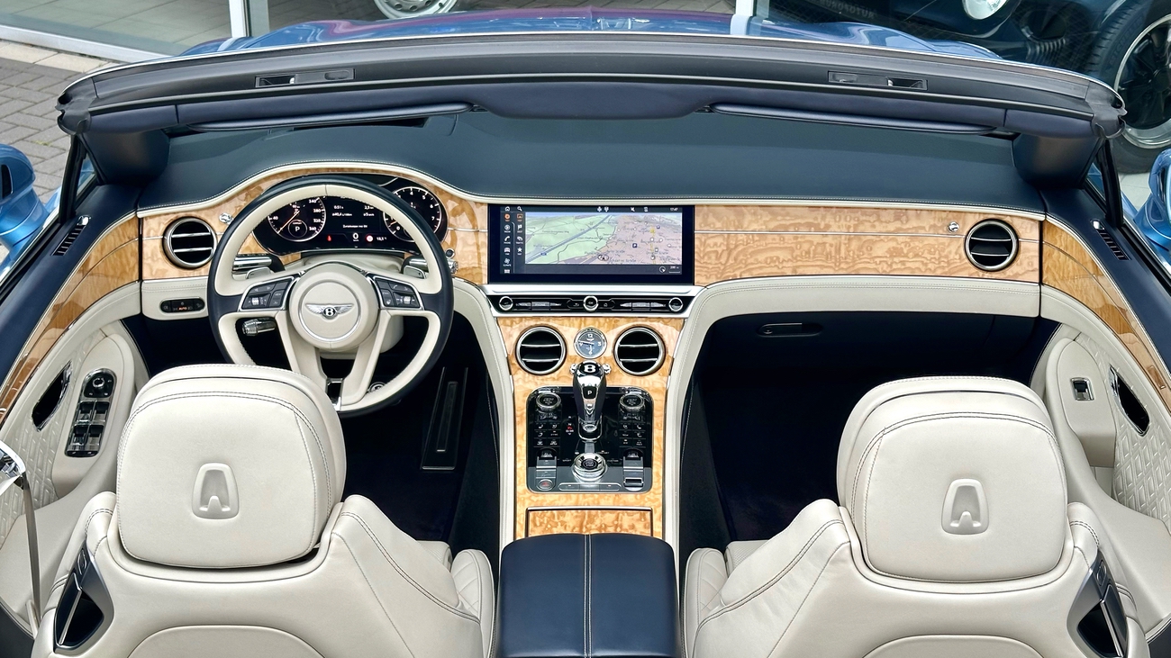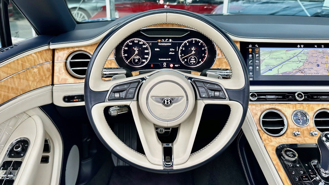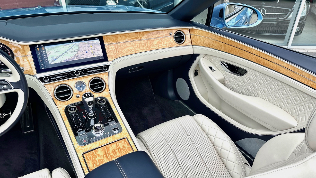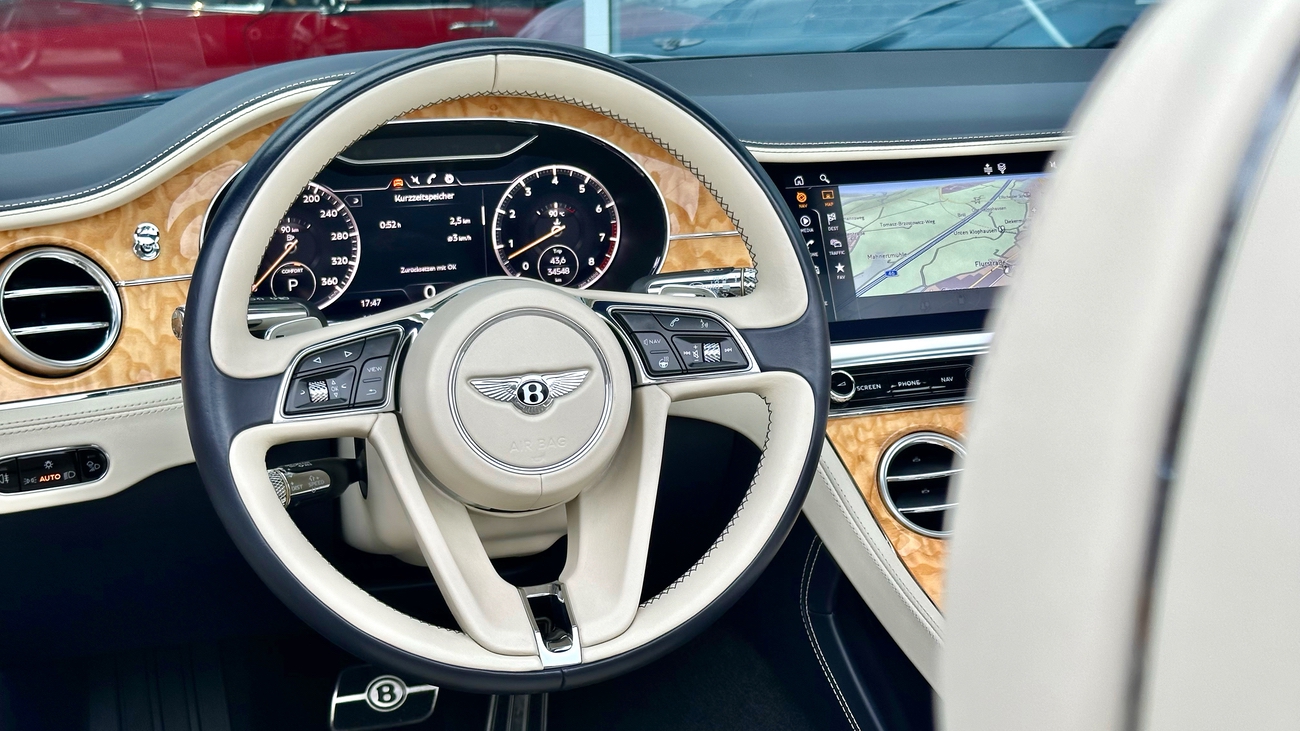 Im Innenraum erwartet Sie eine Welt der Handwerkskunst. Edle Materialien, sorgfältig verarbeitet und mit Liebe zum Detail ausgewählt, schaffen eine Atmosphäre von Opulenz und Komfort. Das Verdeck öffnet sich auf Knopfdruck und verwandelt den Continental GTC in ein Freiluft-Erlebnis, das Sie die Umgebung mit allen Sinnen genießen lässt.