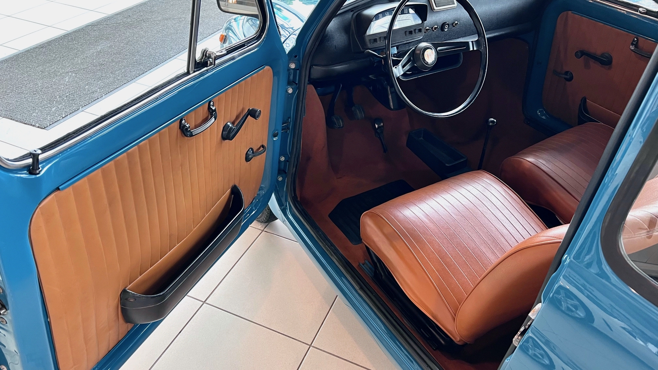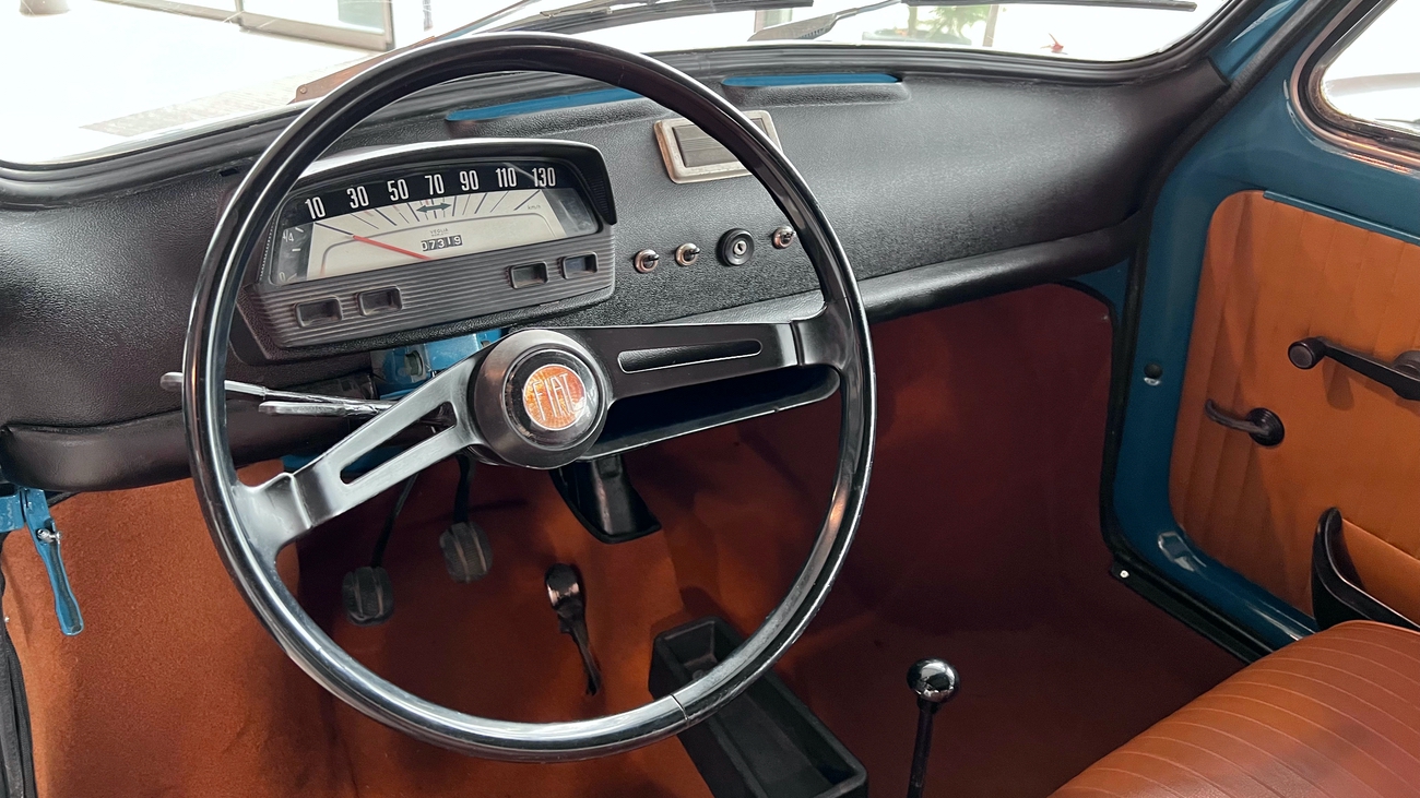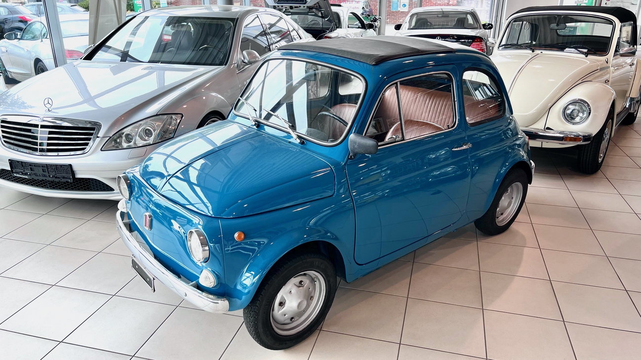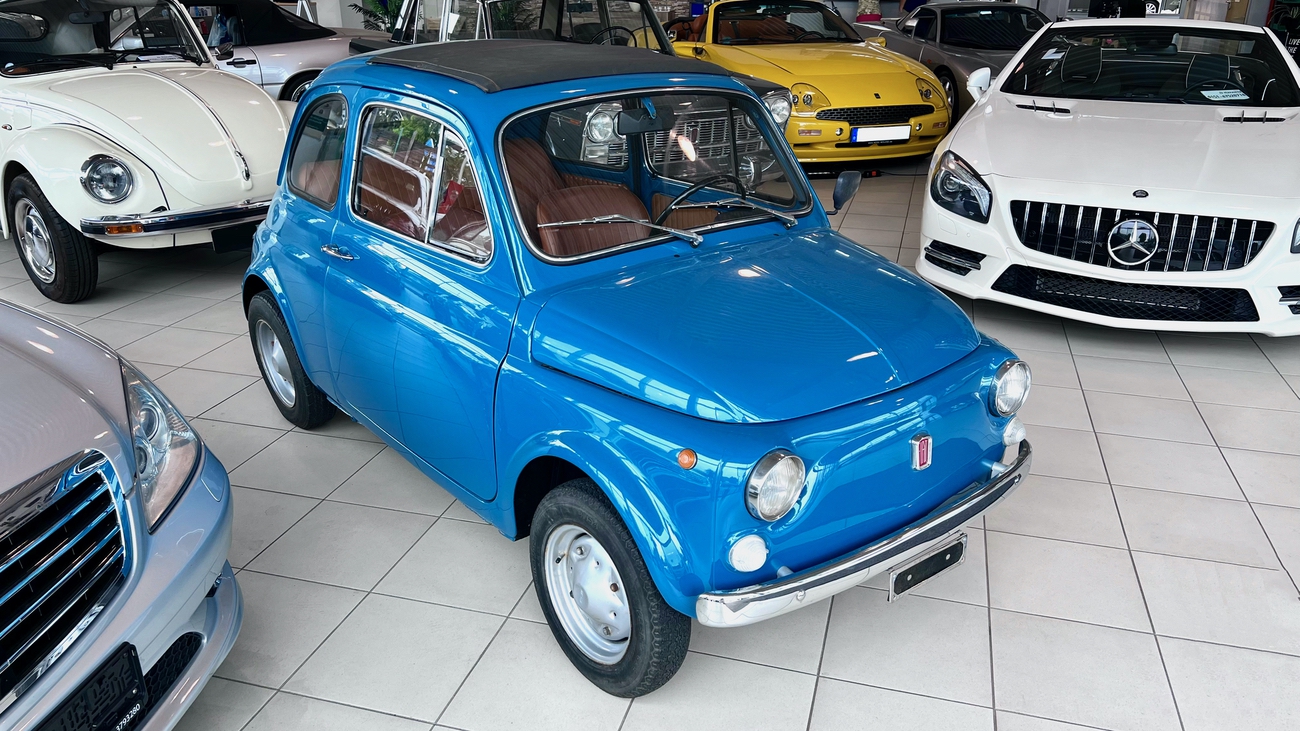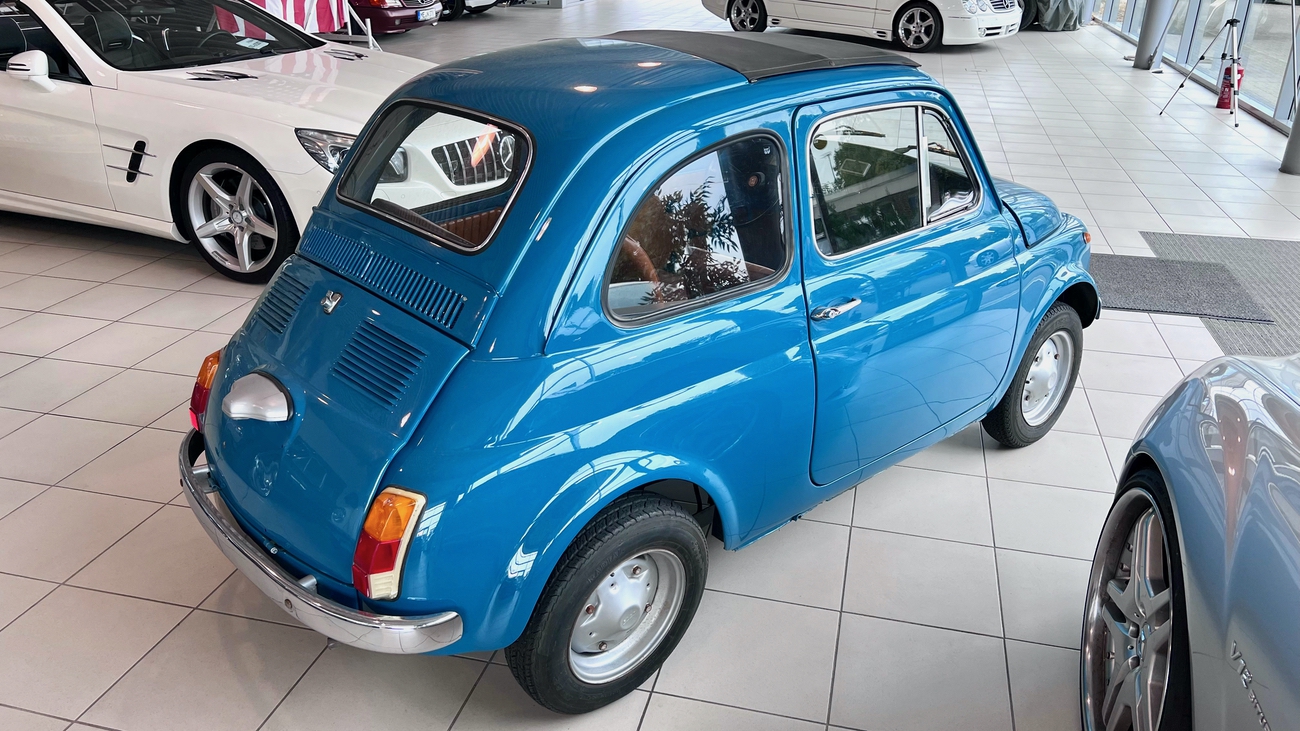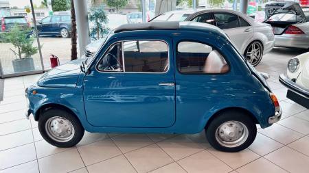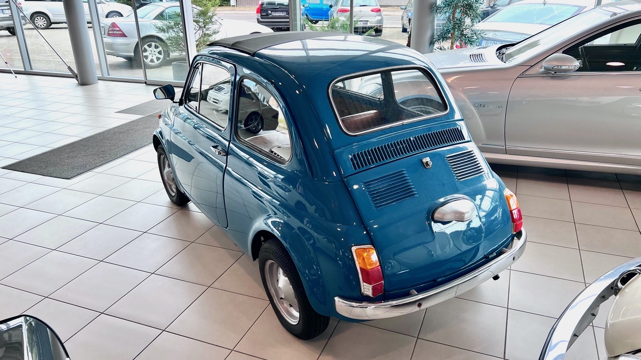 Die ab Sommer 1969 produzierte Generation des Fiat 500 L war eine deutlich modernisierte Variante dieser Baureihe. Die Zusatzbezeichnung “L“ steht für die Luxus-Version und sie bot fortan in Serie den neuen Tacho mit integrierter Tankanzeige, verfügbare Teppichböden in den verschiedensten Farben und ein neues Armaturenbrett mit zusätzlichen Ablagen. Besonders geschätzt waren die vorhandenen Chrom-Stoßstangen.