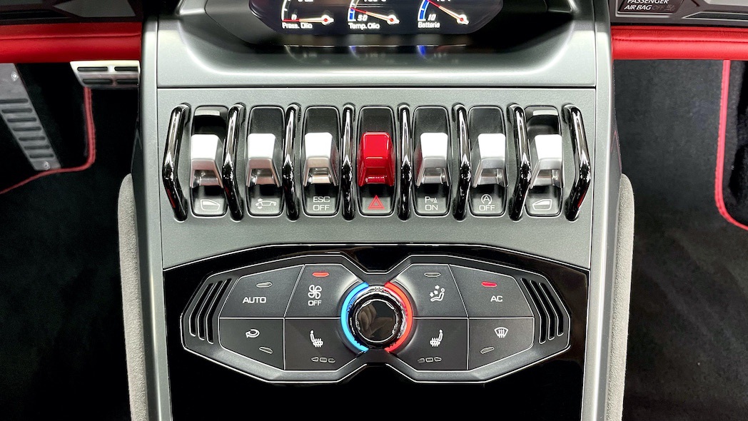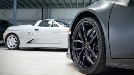 Der rote originale Lack wurde mit mattschwarzer Folie überzogen. Dadurch hat der 610 PS starke Super-Sportwagen aus Sant’Agata Bolognese noch seinen unberührten Originallack auf dem Blechkleid. Tüv-Berichte, Servicerechnungen und die Neuwagenrechnung liegen uns vor.