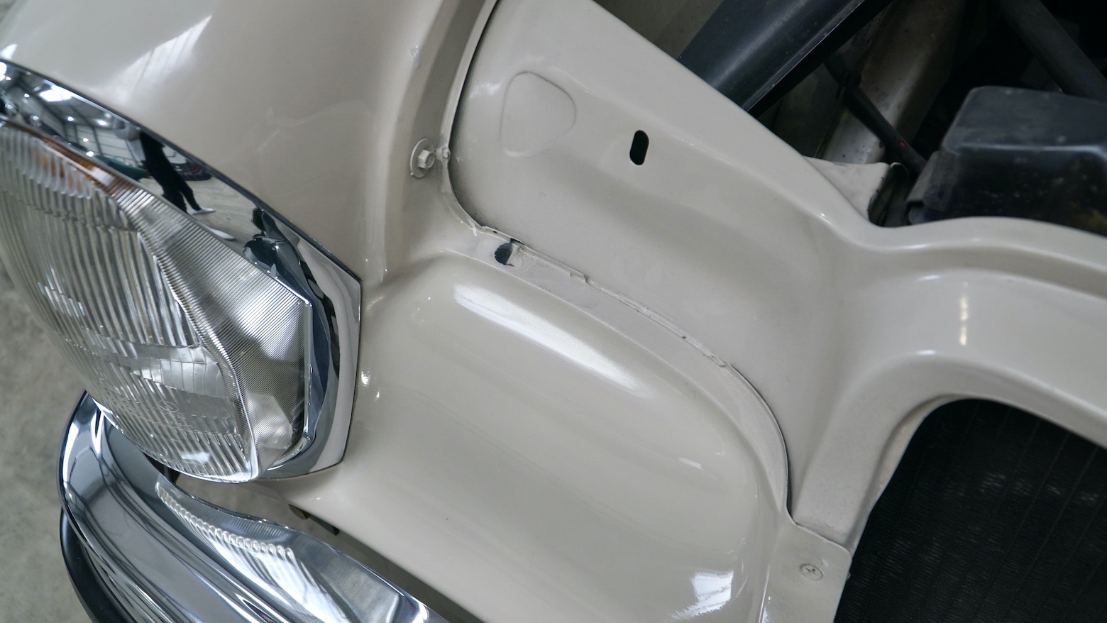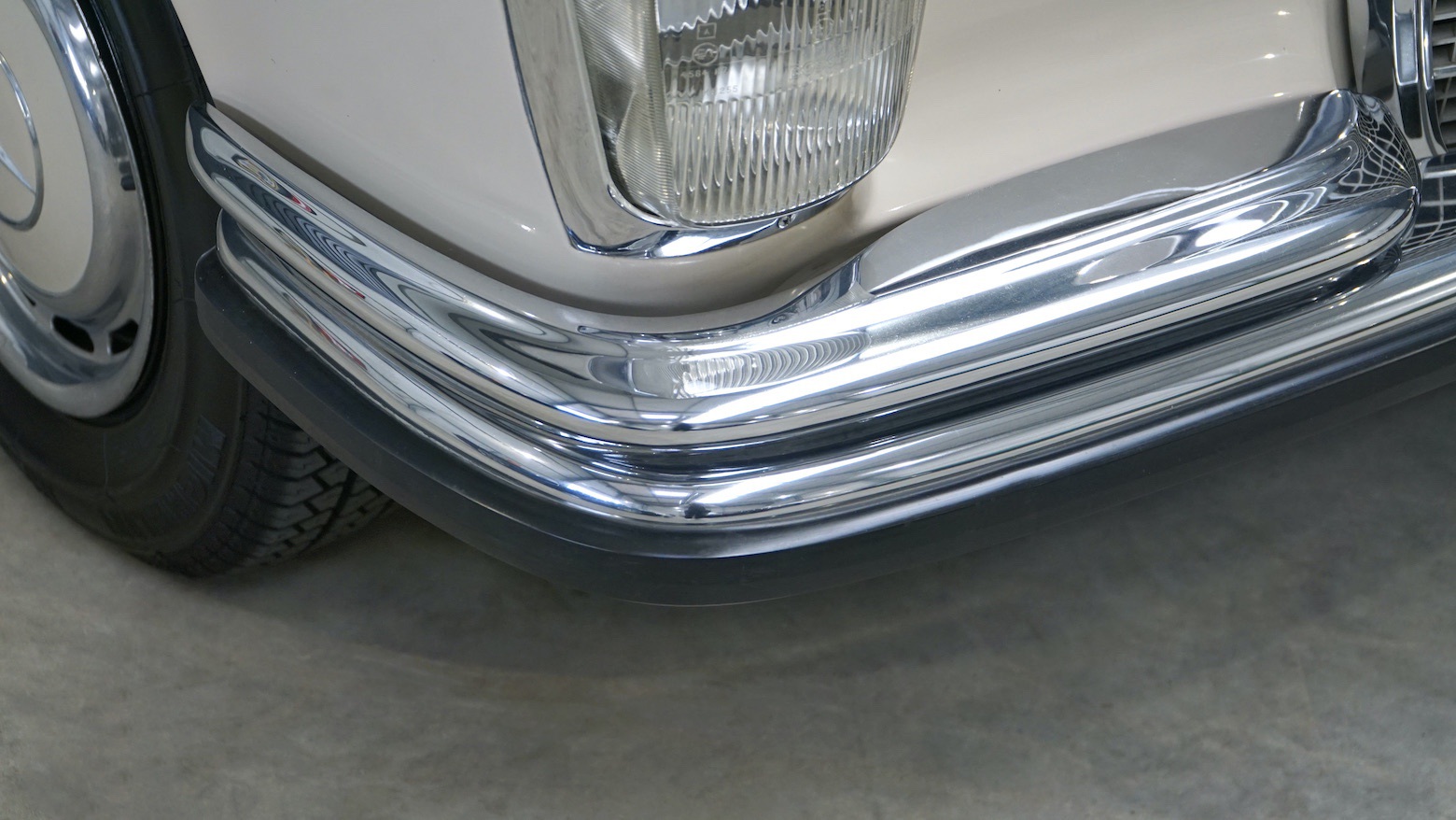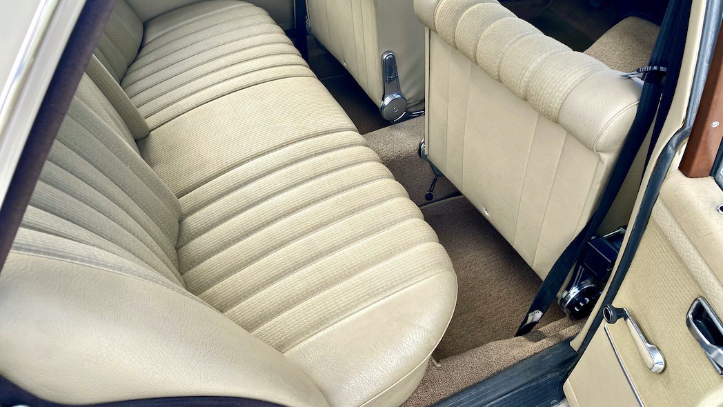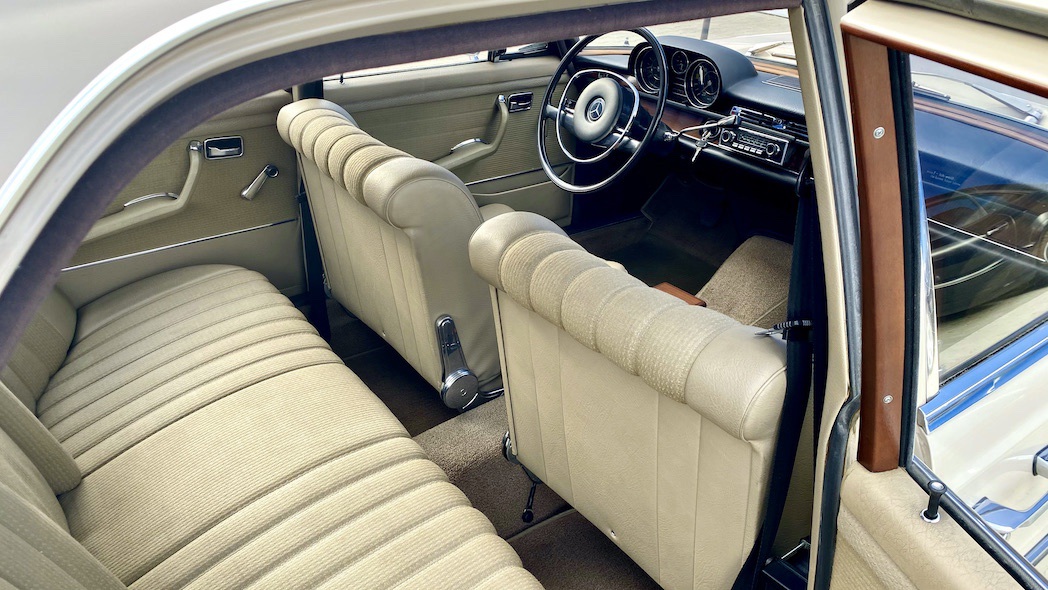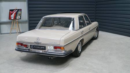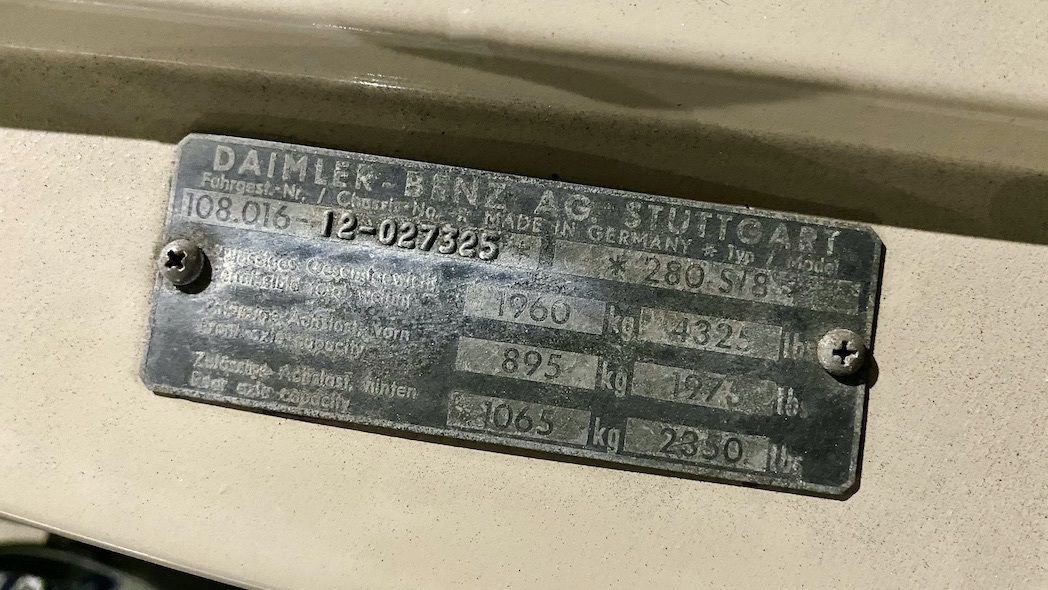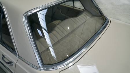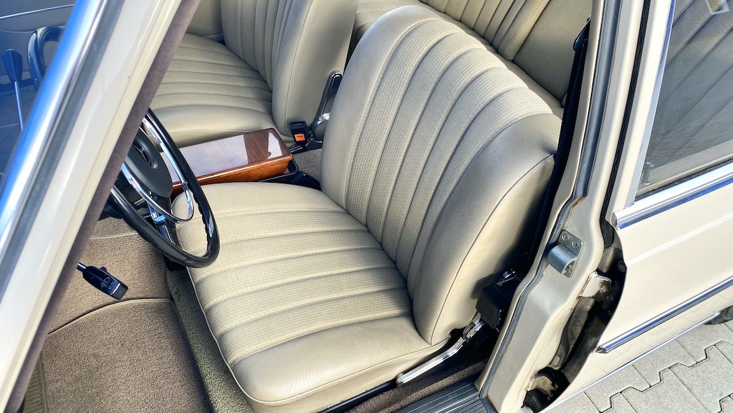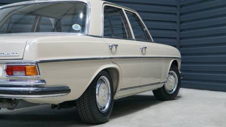 Neben dem Austausch der bereits erwähnten Reifen und Bremsen wurde das Fahrzeug mittels Eisstrahltechnik von Anhaftungen am Unterboden befreit, um sicherzustellen, dass tatsächlich keine Durchrostungen etc. vorhanden sind. Selbst die Wagenheberaufnahmen und Radhausschalen sind nicht ausgetauscht worden. Die Scheiben, Scheibengummis und Scheibenrahmen sind ebenfalls Originale und die Spaltmaße von Hauben und Türen weisen noch die Werkeinstellungen der Mercedes-Benz-Endkontrolle auf. Die Türfangbänder stehen noch so unter Spannung, dass die Tür beim loslassen (ähnlich einer Softclose-Automatik) ins Schloss fällt. Alles in allem ist dieses Fahrzeug sehr beeindruckend und wenn man bedenkt wie oft schon Fahrzeuge restauriert wurden, um wenigstens annähernd einen solchen Zustand zu erreichen und dafür auch noch deutlich mehr Geld in die Hand genommen werden musste, dann setzt dieses Exemplar die Messlatte zu vergleichbaren Fahrzeugen äußerst hoch an. Dieser 280S hier besitzt noch die so gerne erwähnte Seele.