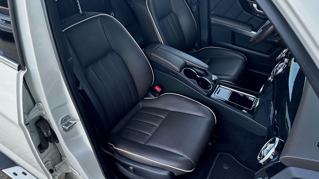 - Sitzbezug / Polsterung: Leder