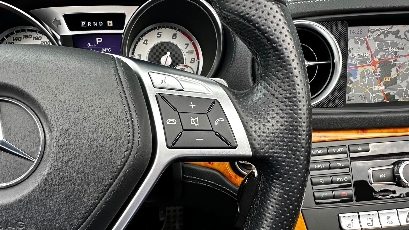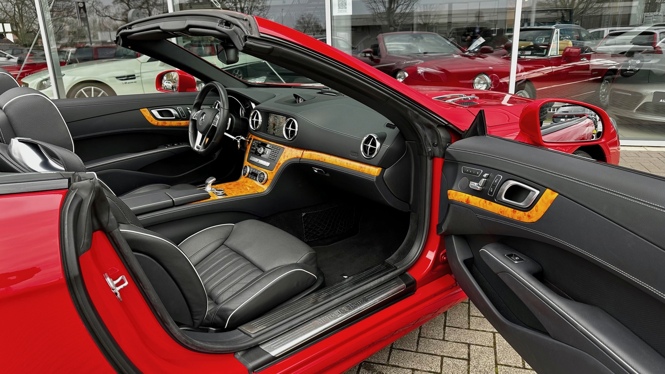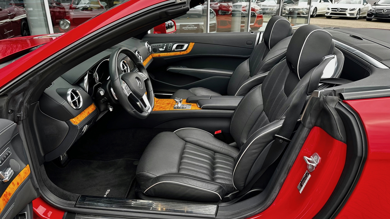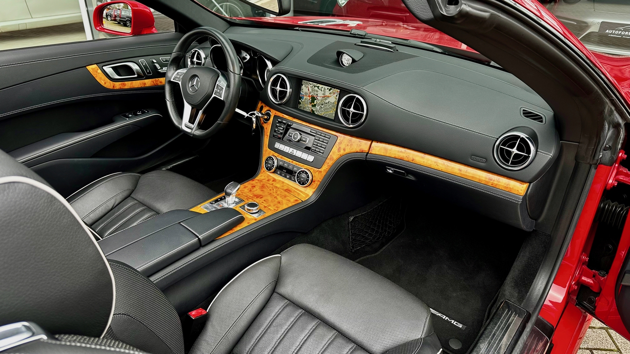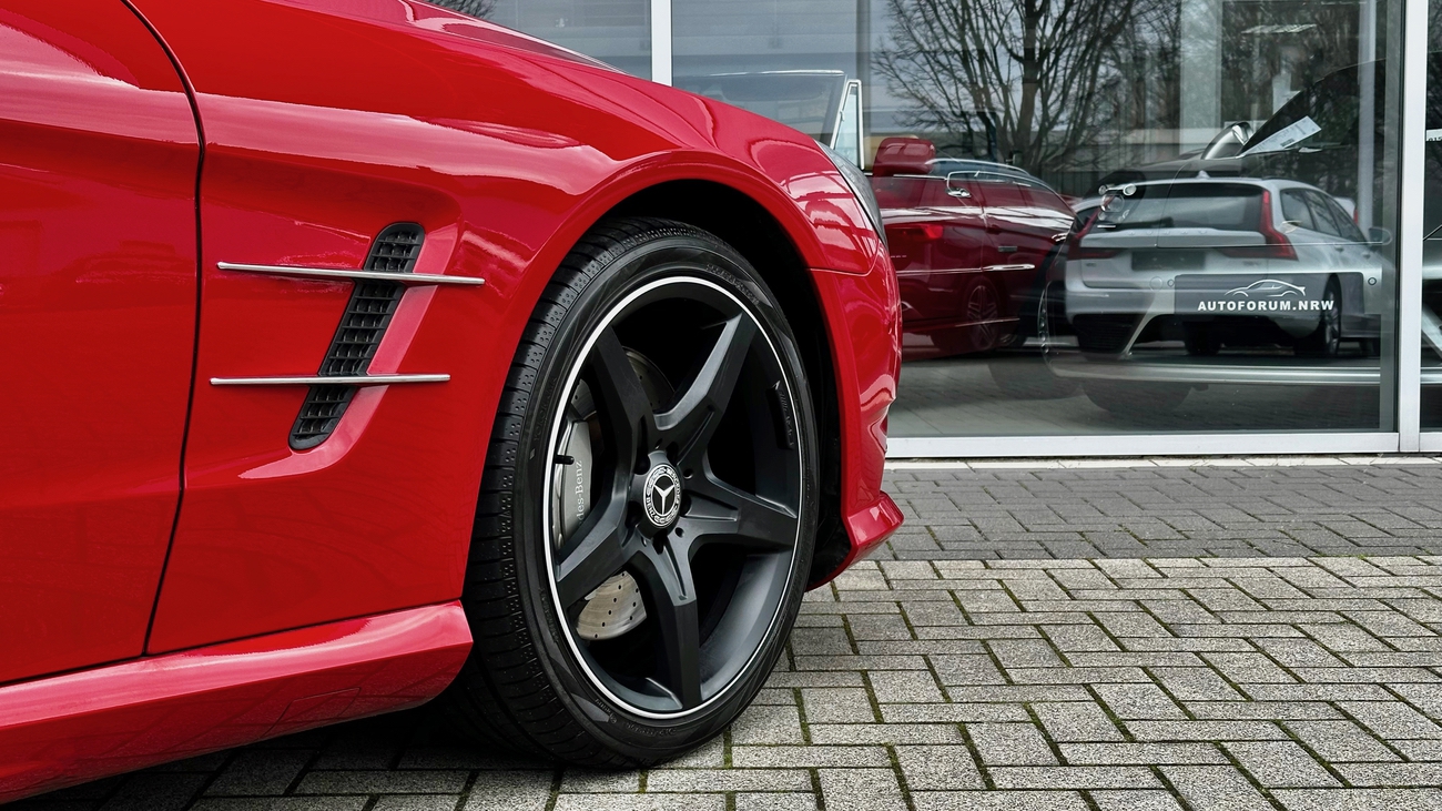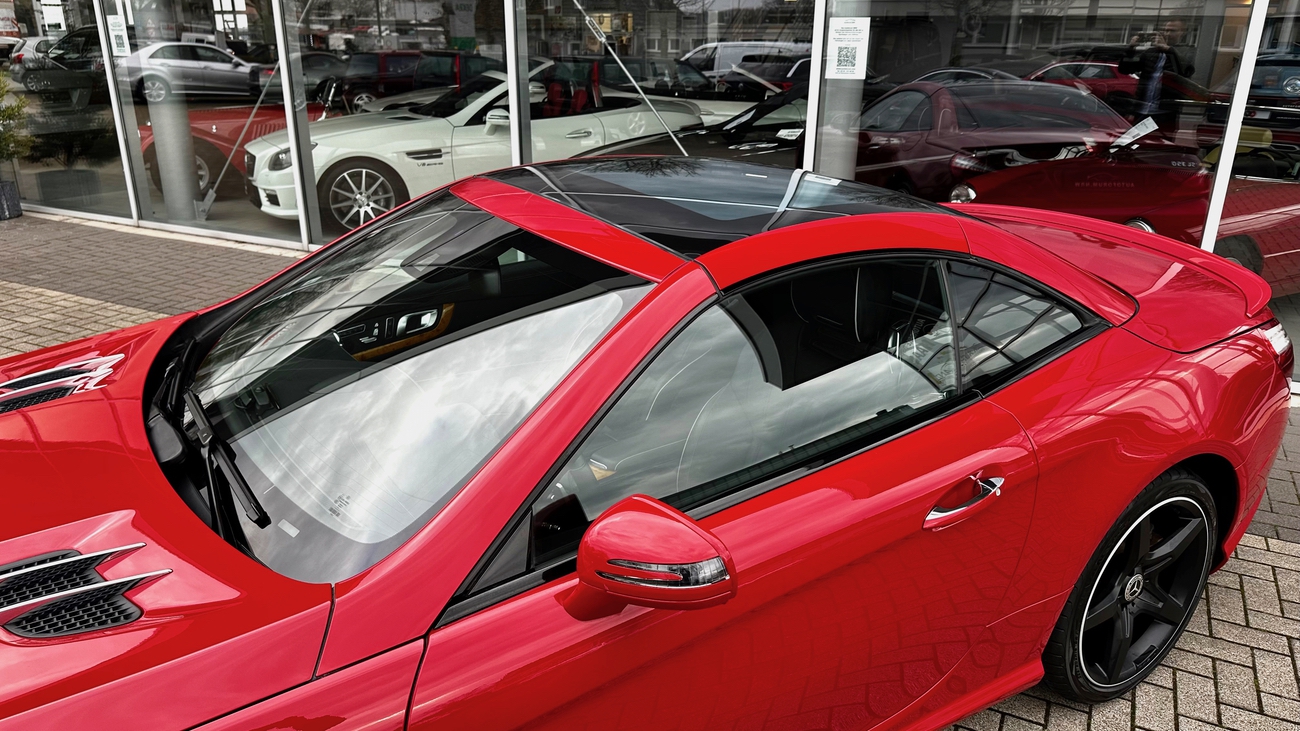 Ein absolut empfehlenswertes Exemplar im schönsten roten Farbton "Feueropal", den Mercedes-Benz zu bieten hatte. Das Cabrio ist beachtlich ausgestattet und bringt einen frischen Service durch Mercedes-Benz mit. Der SL wurde werksseitig mit dem AMG Styling-Paket ausgeliefert und das Kartenmaterial des Navigationssystems wurde auf die aktuelle Version aktualisiert.