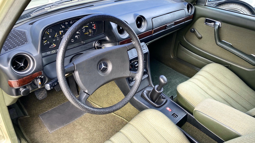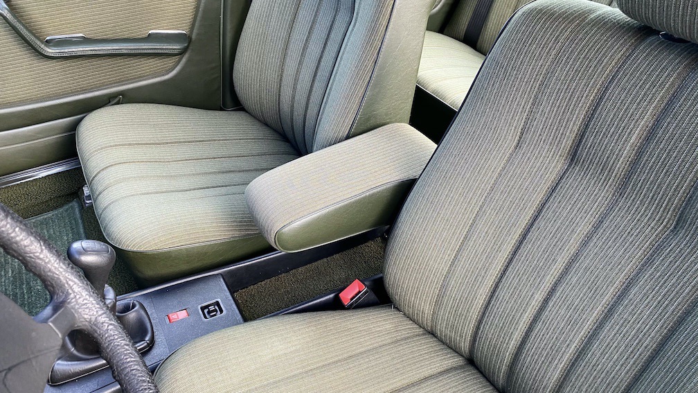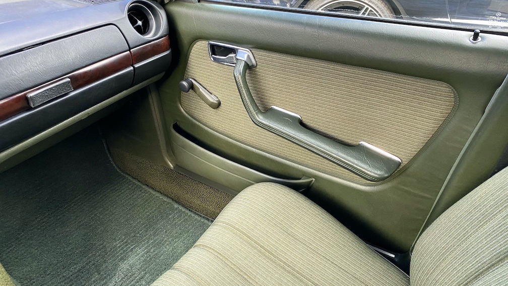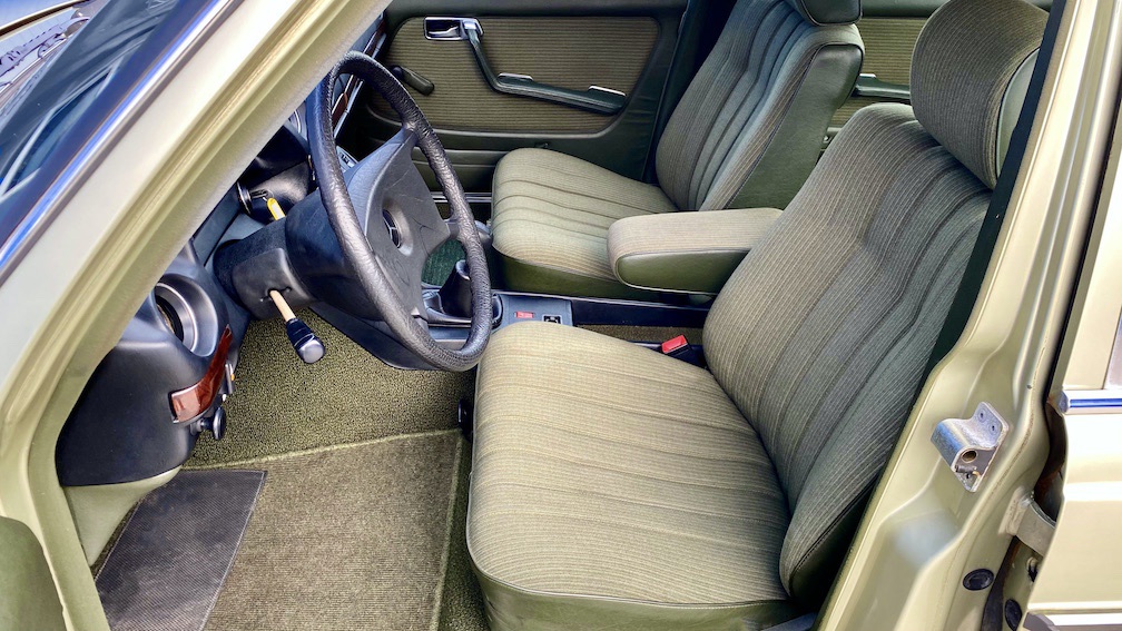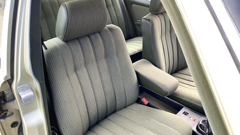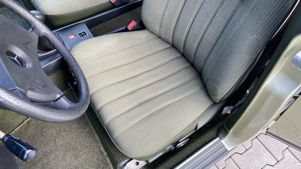 Diese 123er Limousine ist ein echtes ungeschweißtes Exemplar, welches bis zum heutigen Tage noch die originalen Wagenheberaufnahmen und Radhausschalen verbaut hat. In der Regel wäre hier durch den üblichen Rostbefall schon längst das ein oder andere ausgetauscht worden, doch nicht bei diesem Fahrzeug. Hier ist das Blechkleid sowie der Unterboden noch Original. Selbst im Innenraum sind die zurückgelegten Kilometer nicht erkennbar und sämtliche Sitzbezüge, Teppiche und Verkleidungen sind unbeschädigt und absolut unverschlissen.