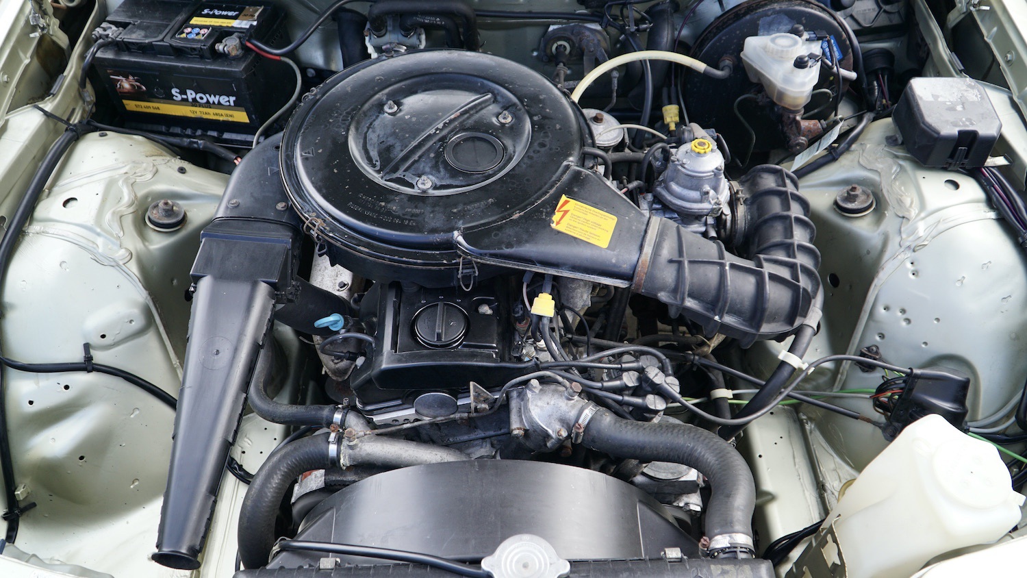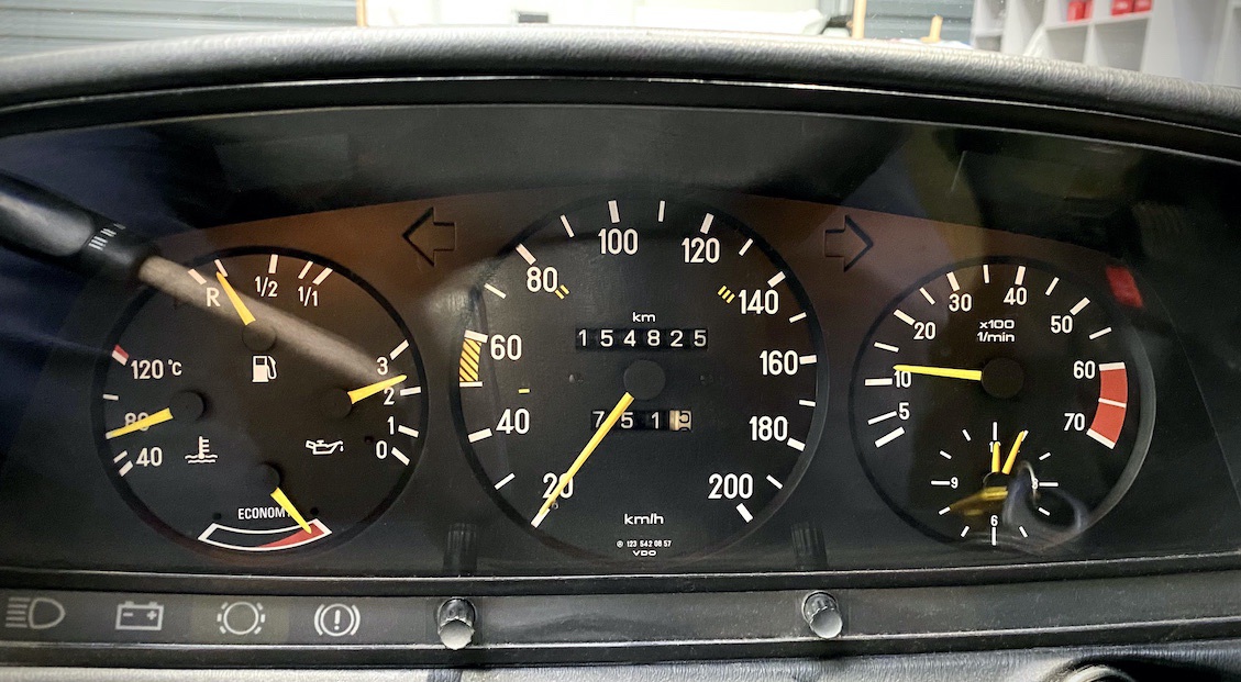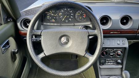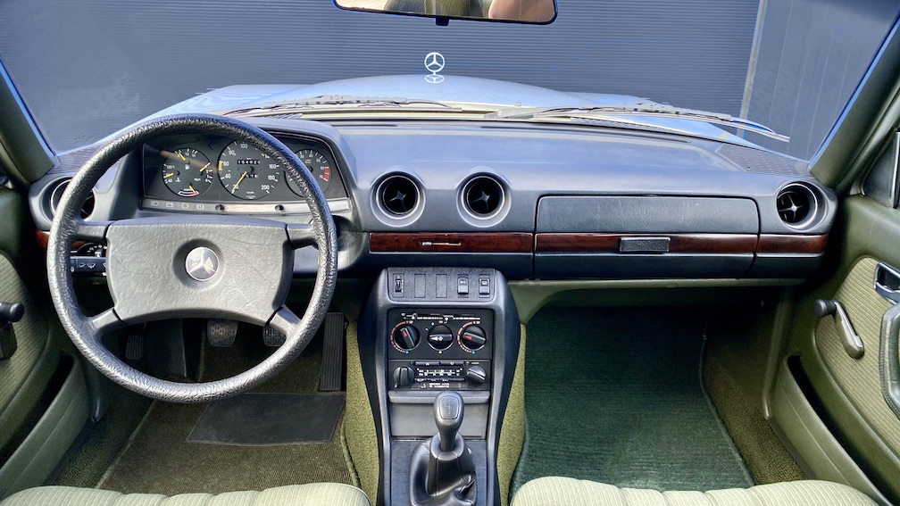 Mitte März des Jahres 1984 lief die Limousine vom Band und wurde am 30.03.1984 auf eine 1960 geborene Beamtin aus Koblenz zugelassen. Im Juni 1990 überschrieb die Dame den Wagen auf Ihren 1925 geborenen Vater, welcher ihn mit gleichem Kennzeichen bis 1996 besaß. Im April 1996 wechselte die Limousine in die Hände eines 1961 geborenen Dachdeckers aus dem Kreis Koblenz. Dieser behielt den Wagen 9 Jahre bis er ihn dann 2005 verkaufte. Der letzte Besitzer (seit 2005), ein Zahnarzt aus Hessen, lies den 123er im Oktober 2005 auf sich zu und bewegte ihn eher selten, da sich seine Praxis im gleichen Haus befand. Im Jahre 2014 (im Alter von bereits 76 Jahren) gab er seinen Führerschein ab und parkte das Fahrzeug in seiner Garage. Die gesamten Jahre war er übrigens nicht darüber informiert, dass dieses Fahrzeug bereits als Oldtimer mit H-Kennzeichen hätte fahren können. Er hatte den 123er bis zur Abmeldung ganz normal (ohne Vergünstigungen) zugelassen. Vom 16.04.2014 an wurde das Fahrzeug nicht mehr bewegt und erst durch einen Verwandten im Dezember 2020 wieder zum Leben erweckt. Die Flüssigkeiten, Zündkerzen, Keilriemen, Reifen sowie die Batterie wurden ausgetauscht und das Fahrzeug fährt wie am ersten Tag. Der Motor dreht wirklich schön und der gesamte Antriebsstrang nebst Kupplung und Getriebe harmoniert hervorragend.