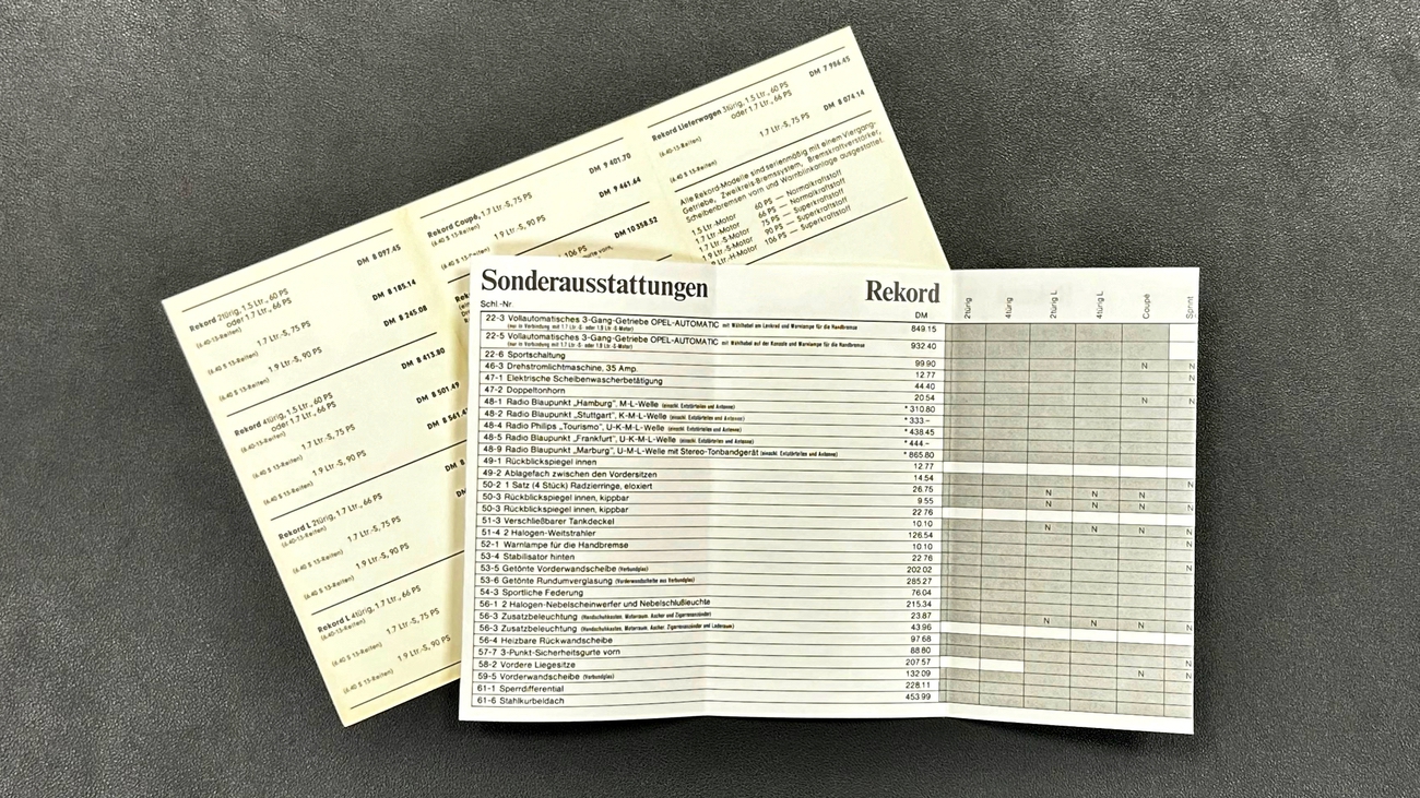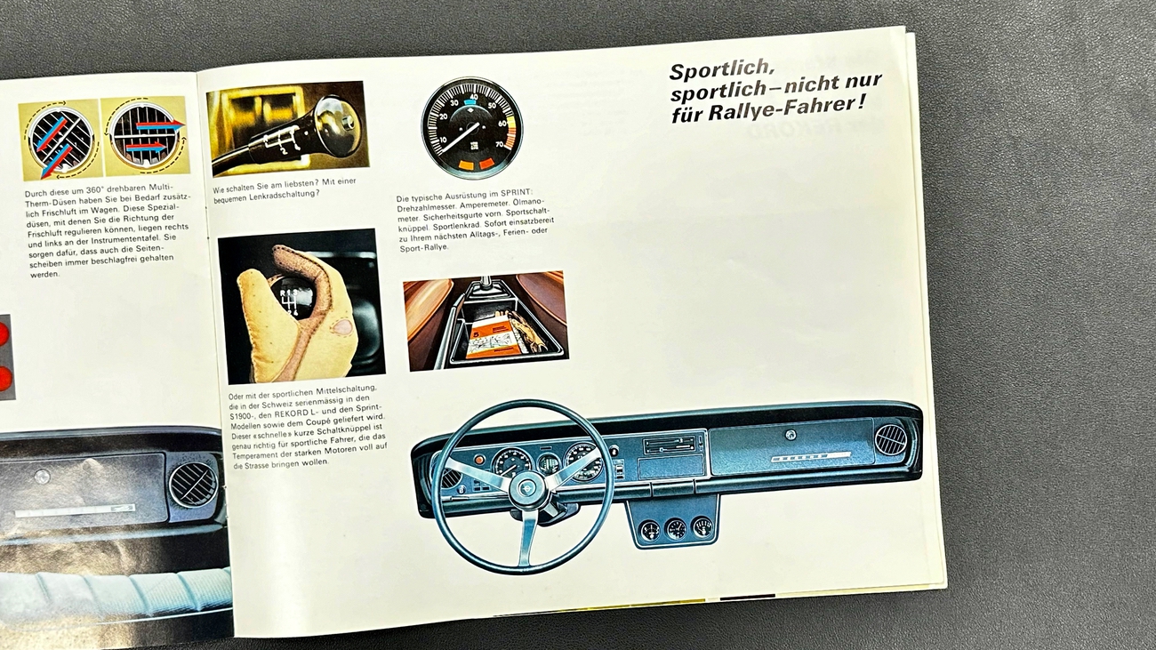 Es ist gar nicht so einfach die passenden Worte zu finden, welche diesen Rekord S 1900 gerecht beschreiben könnten. Obwohl das Fahrzeug sofort fahrbereit ist, gehört es eigentlich ins Museum. Der Zustand sucht vergebens seines Gleichen. Die Bereifung, die Zündkerzen und die Flüssigkeiten sind getauscht. Hier lohnt ein Blick wirklich und Jeder der schon immer davon geträumt hat, ein Fahrzeug sein Eigen zu nennen, welches auch noch seine Seele besitzt, ist hier absolut richtig. So etwas findet man kein zweites Mal. Eine Kopie der Schweizer Zulassung liegt uns neben diversen Tüv-Berichten, einigen originalen Opel Rekord Verkaufsprospekten und der damaligen Preisliste vor. Diese werden selbstverständlich mit an einen möglichen Käufer übergeben.