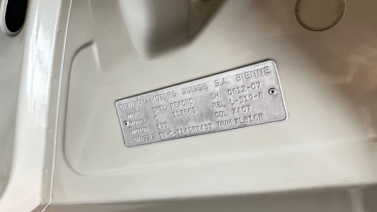 Diese zweitürige Limousine lief im April 1970 in der Schweiz vom Band und wurde am 15.05.1970 auf Herrn Kurt Steimer, westlich von Zürich zugelassen. Ganze 46 Jahre war der Rekord S 1900 in den Händen des ersten Besitzers, welcher 1938 geboren wurde und eine kleine Berühmtheit in der Schweiz war. Herr Steimen war 37 Jahre lang Musiklehrer und selbst Mitglied der Gruppe «Eusi Lüüt». Des Weiteren war er kirchlich und politisch sehr aktiv und er verspürte bis ins hohe Alter einen Tatendrang, der nur schwer zu bändigen war. (Einige Presseberichte über diesen Herrn, liegen uns vor.) Am 11.03.2022, nur 5 Tage nach seinem 84. Geburtstag, verstarb Herr Steimen und sein Opel Rekord S 1900, welchen er so gut wie nie bewegte, wechselte in die Hände eines bekannten Sammlers von Niedrigkilometer-Fahrzeugen aus Nordrhein-Westfalen. Auf diesen Herrn ist der Opel bis heute mit H-Kennzeichen zugelassen.