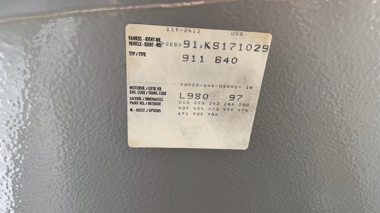 Dieses Exemplar wurde am 18.01.1989 vom Porsche-Audi Händler "Niello" aus der kalifornischen Stadt "Concord" in der San Francisco Bay Area, als Neufahrzeug über den Generalimporteur "Porsche Cars North America, INC. bestellt. Die interne Porsche an Porsche Bestellung liegt uns im Original vor. Am 30.03.1989 kaufte der Inhaber eines US-Möbelimperiums den Porsche und übernahm ihn mit einem Kilometerstand von: 53 Meilen / 85 km. Das Fahrzeug blieb von 1989 bis Anfang 2002 in seinem Besitz und war nordöstlich von San Francisco auf ihn zugelassen. Mitte 1997 eröffnete er in der Stadt "Austin" in Texas eine weitere Niederlassung seines Möbelunternehmens und ließ den Porsche im Sommer 1997 von einem Transporteur nach Texas überführen. Dort wurde das Fahrzeug am 24.07.1997 umgemeldet und erhielt ein Texanisches Kennzeichen. Im Januar 2002 wurde der Porsche mit einem Kilometerstand von: 14.341 Meilen / 22.945 km an einen zweiten, im Jahr 1937 geborenen Halter, aus Texas verkauft. Dieser Herr war ein vermögender Kunde des Möbelhauses und gerade im Begriff von Texas nach Kalifornien umzuziehen, so dass das Fahrzeug schon kurz nach dem Kauf seinen Weg wieder zurück nach San Francisco fand. Dort erhielt es wieder die Kalifornische Zulassung und war bis zum September 2011 auf ihn registriert. Im Juni 2011 entschied die Familie sich dazu sämtliche Fahrzeuge des Vaters zu verkaufen, da der Eigentümer mittlerweile 74 Jahre alt war und mit keinem seiner Fahrzeuge mehr fuhr. Schon knappe zwei Wochen später fand sich ein Käufer aus Deutschland, weshalb das Cabrio am 18.09.2011 vom Hafen in Oakland nach Rotterdam verschifft wurde. Somit berührte das Fahrzeug wieder deutschen Boden auf dem es einst gebaut wurde. Am 09.11.2011 wurde das Fahrzeug vom TÜV Rheinland untersucht und abgenommen und ist seitdem mit H-Kennzeichen in NRW zugelassen.