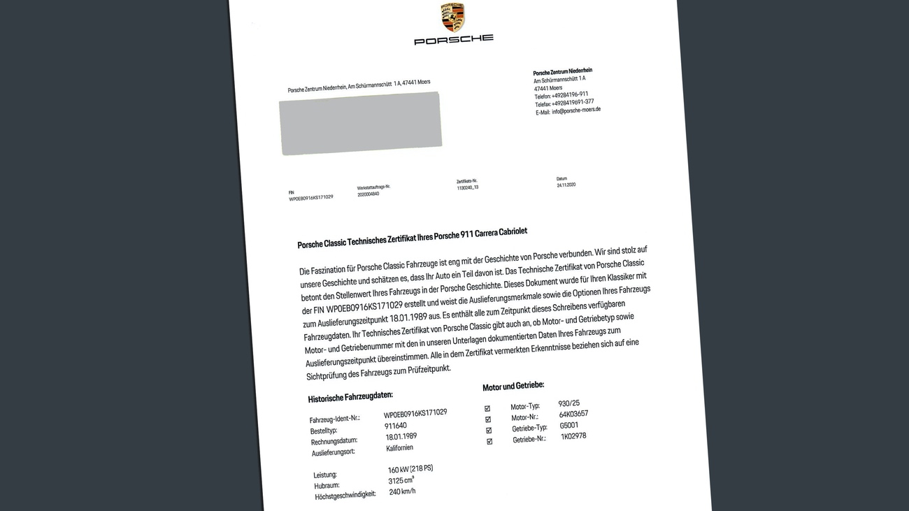 - Porsche Classic Zertifikat vorhanden