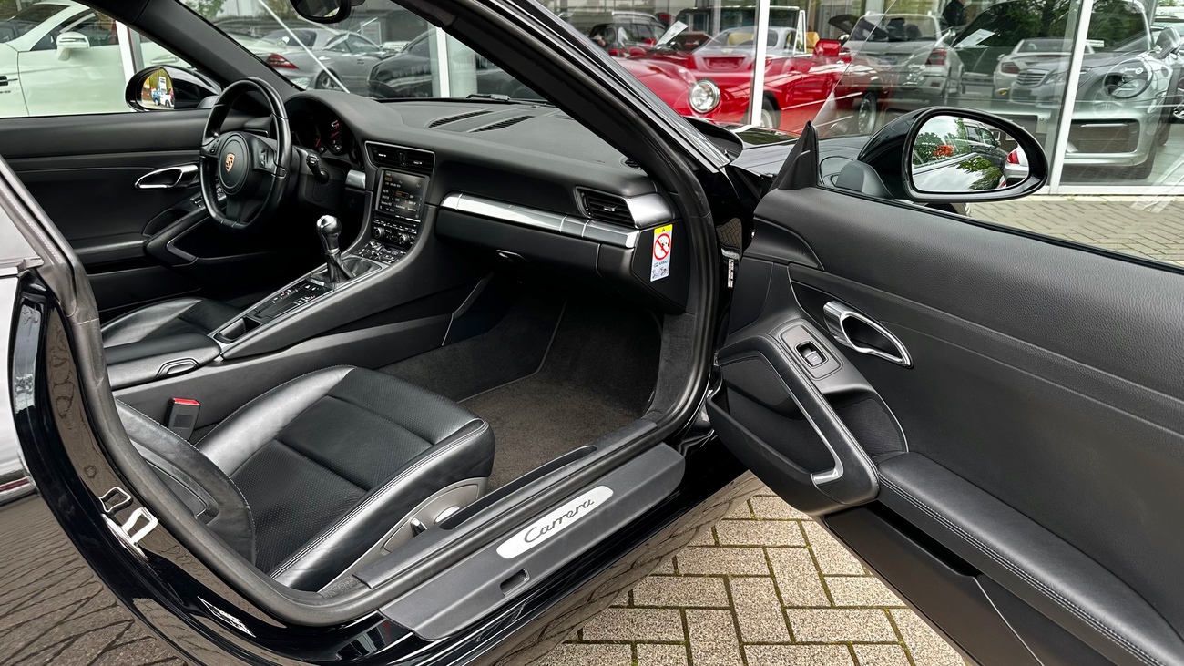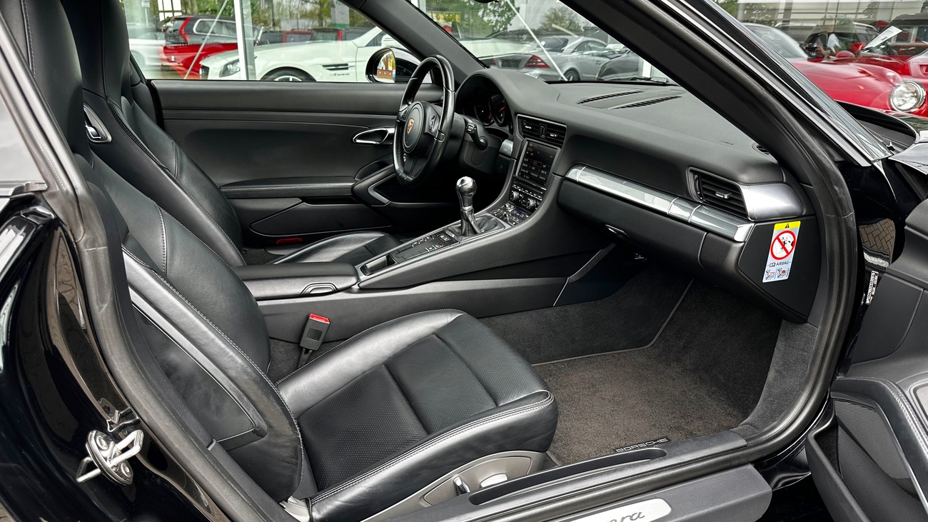 Dieses Porsche 991 Coupé mit 350 PS und manuellem 7-Gang-Schaltgetriebe ist ein hervorragender Sportwagen, der Fahrfreude auf höchstem Niveau bietet. Wir schätzen das direkte und engagierte Fahrerlebnis, dass das Schaltgetriebe in diesem Exemplar bietet. Das manuelle schalten der Gänge ermöglicht es, deutlich kraftstoffsparender als mit einem Automatikgetriebe zu fahren und das Auto äußerst präzise zu kontrollieren, um das Beste aus der Leistung des Motors herauszuholen. Der optische und technische Eindruck dieses Coupés spiegelt unübersehbar den bisherigen Pflegezustand wieder. Der Innenraum ist hochwertig verarbeitet und die Bedienungselemente sind absolut ergonomisch angeordnet.