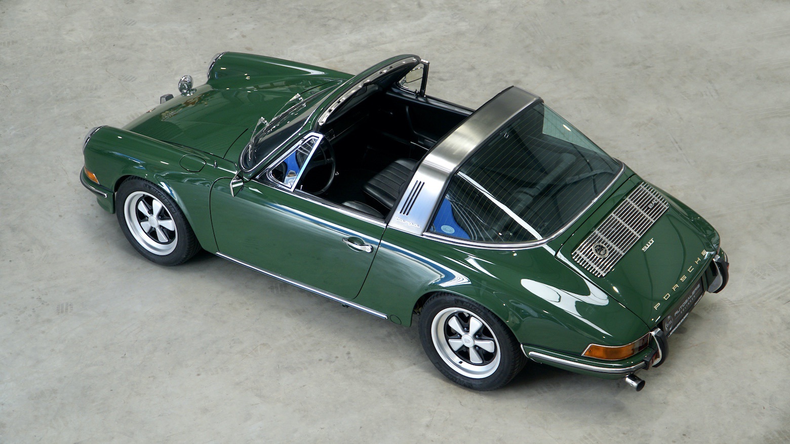 Dieses irisch grüne 911 Targa F-Modell befindet sich im Besitz eines Grafen aus Düsseldorf, ein Architekt, welchen auch eine tiefe Freundschaft mit dem 2012 verstorbenen Ferdinand Alexander Porsche verband. Für ihn entwarf der Eigentümer des Porsche Targas sogar eine Stadtvilla, welche im Jahr 2003 realisiert und gebaut wurde und nur knappe 800m Luftlinie von der Stuttgarter Porsche Villa entfernt steht. Das Emblemen auf der Motorhaube wurde im übrigen mit freundlicher Genehmigung der Familie Porsche, mit dem Familienwappen des Grafen bestückt und verziert seit dem die Haube.