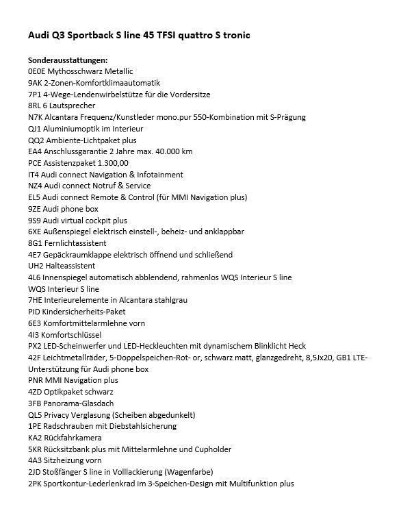 | Innenausstattung | Lederausstattung Oregon/ schwarz |